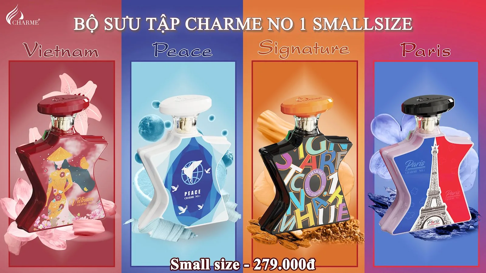 Nước hoa Charme No.1 Paris đã được Charme Perfume tung ra vào cuối năm 2020. Lấy cảm hứng từ những nốt hương thuộc nhóm hương hoa cỏ phương Đông đầy thu hút dành cho tất cả mọi người. Với bốn nốt hương là Hoa hồng Đan Mạch, gỗ trầm hương quý giá, kẹo nhân hạt và tử đinh hương.