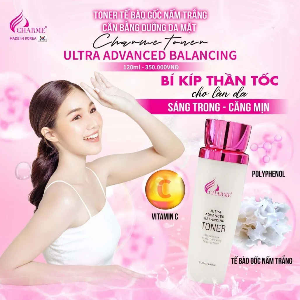 Toner tế bào gốc nấm trắng vừa mới ra mắt nhà Charme chính là mỹ phẩm dưỡng da dạng lỏng có chức năng dưỡng da lại sau bước rửa mặt giúp da được nuôi dưỡng tốt và dễ hấp thu dưỡng chất từ kem dưỡng da tốt hơn đồng thời ngăn ngừa mụn, se khít lỗ chân lông, hạn chế nguy cơ da bị hủy hoại do môi trường.