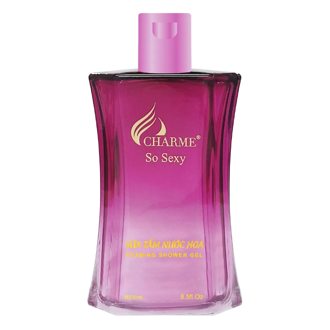 Sữa Tắm Nước Hoa Charme So Sexy với Mùi Hương Nước Hoa Charme So Sexy. Đây là hàng độc chỉ có ở CHARME. Bạn sẽ trở thành Hàm Hương khi cơ thể khoát lên một trong các mùi hương tuyệt vời quyến rũ và đỉnh nhất của NƯỚC HOA CHARME.