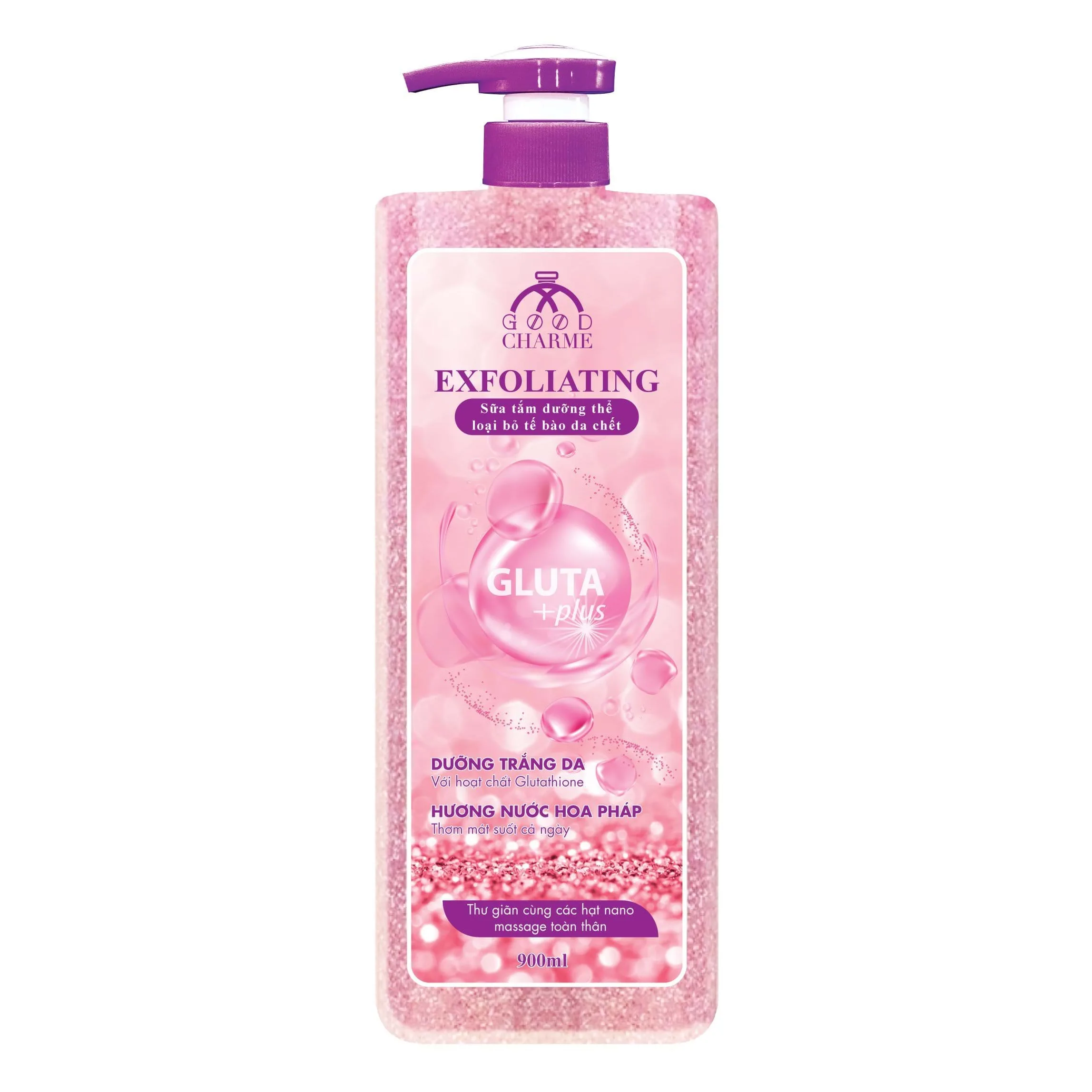 Thấu hiểu điều đó CHARME đã nghiên cứu và cho ra đời sản phẩm Sữa Tắm Tẩy Tế Bào Da Chết Charme Exfoliating được chiết xuất từ hạt hạnh đào, PCA và glutathione.Từ những hạt scrub nhỏ có trong sản phẩm sẽ tạo sự mát xa nhẹ nhàng khi bạn sử dụng trong lúc tắm, da chết sẽ được cuốn theo các hạt này một cách tự nhiên mà không gây tổn hại gì cho da, sản phẩm kết hợp với hương thơm nước hoa Pháp ngọt ngào tạo cảm giác nhẹ nhàng thư giãn khi sử dụng. Đây chính là một trong những giải pháp hữu hiệu nhất giúp bạn chăm sóc cơ thể luôn khô thoáng và hạn chế khả năng sinh trưởng, phát triển của các vi khuẩn gây mụn trên lưng và cơ thể, giúp làm sạch vào sâu bên trong các tuyến nang lông giúp loại bỏ chúng nhanh chóng, tẩy da chết và thu nhỏ lỗ chân lông trên cơ thể hiệu quả nhất.